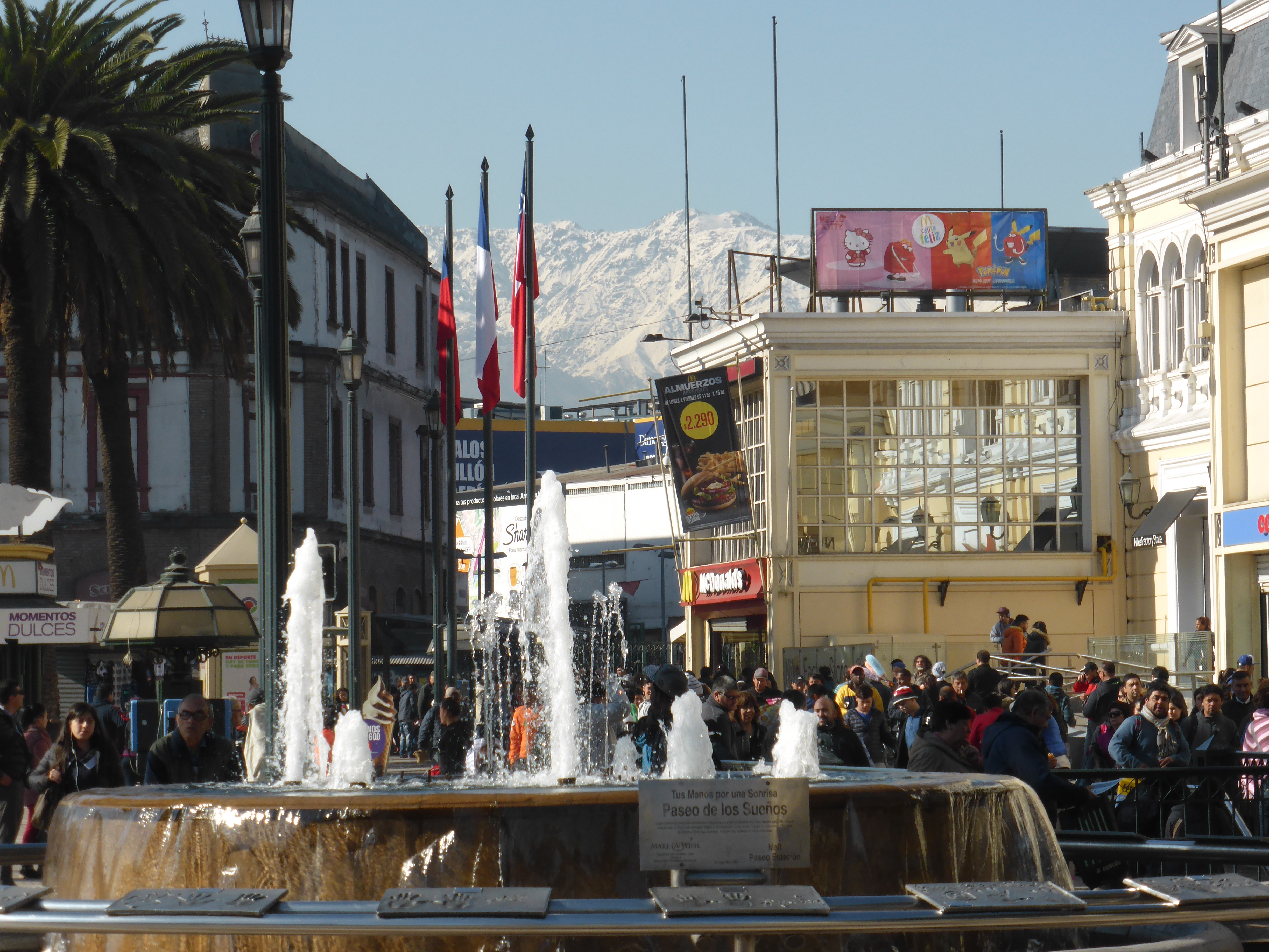 We walked along the large boulevard for a couple of miles before starting our return. Late morning called for refreshments and we sat at a pavement cafe to enjoy our drinks and watch the Santiago people go about their daily business. We also chatted about travel – and about Santiago.