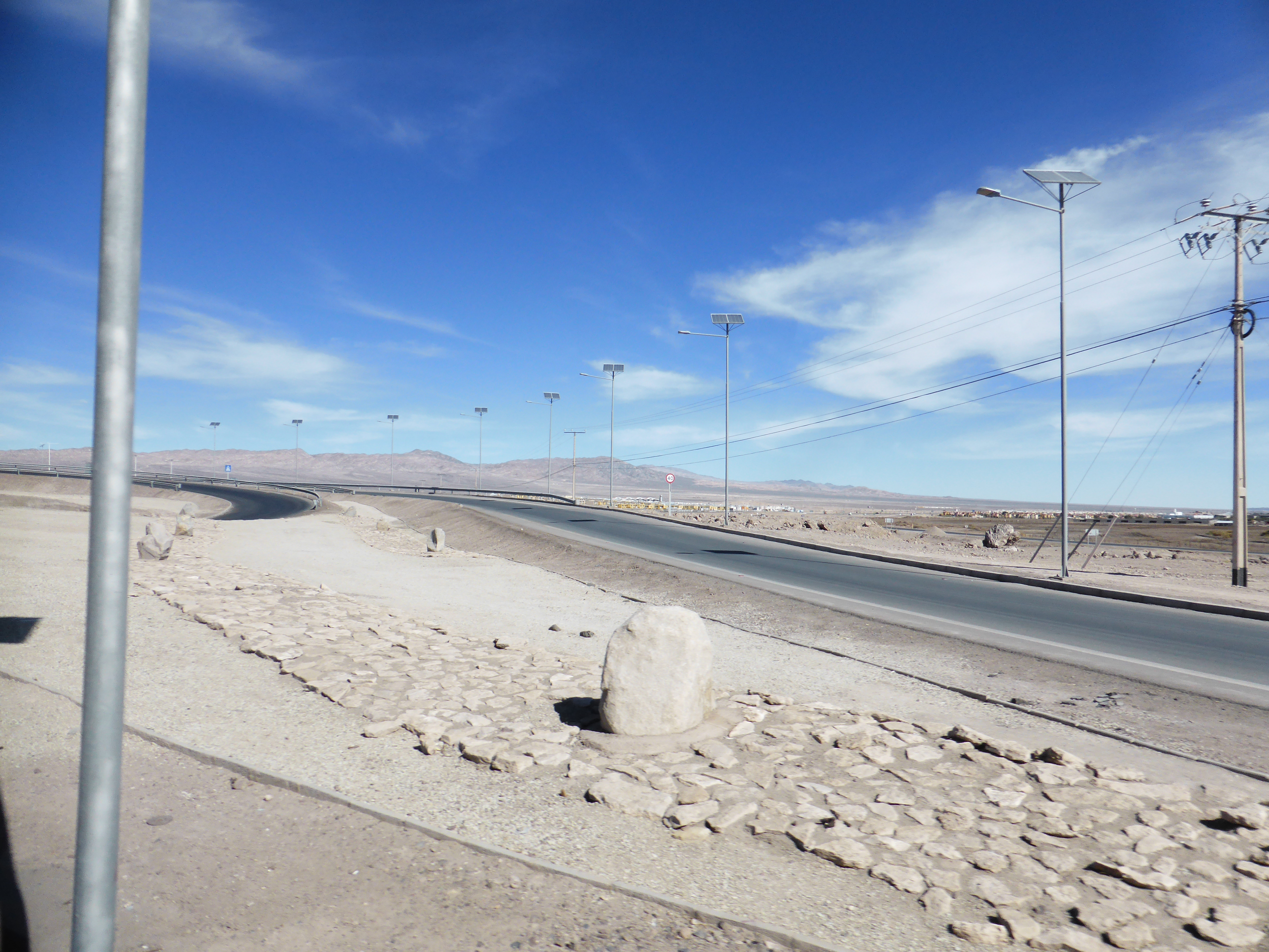 Early evening and our flight was ready to board – departing a little after 6pm. Two hours later we landed at Calama – a small city in the northern half of Chile. From there we caught a taxi to our hotel – arriving around 9pm. We both wanted food and so we walked to the centre so see what was open. The immediate things we noticed were the number of stray dogs on the streets, the number of homeless people, the steel shutters on every building that was closed and the graffiti. Not the most impressive indicators.