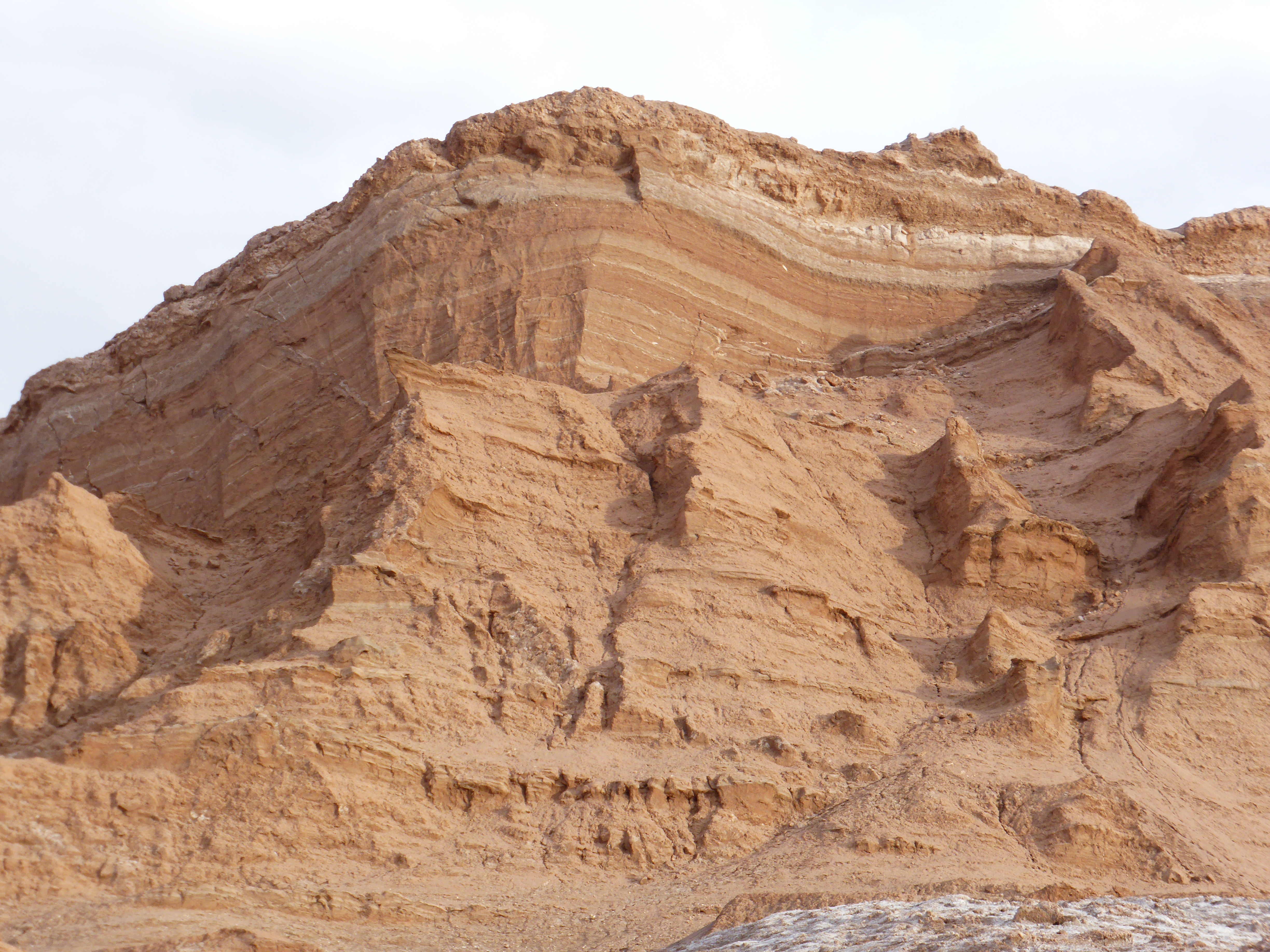 Here we got out of the minibus and started our walk up a sandy track alongside huge rocks and sand dunes. It was an uphill trek for around 20 minutes but once at the top the scenery… well… was stunning to say the least. Vast sand dunes like small mountains, rocks of many different colours and layers, mountains in the distance and salt flats too. The colours, the landscape, the scenery, the stillness – all led to something I had not witnessed previously.