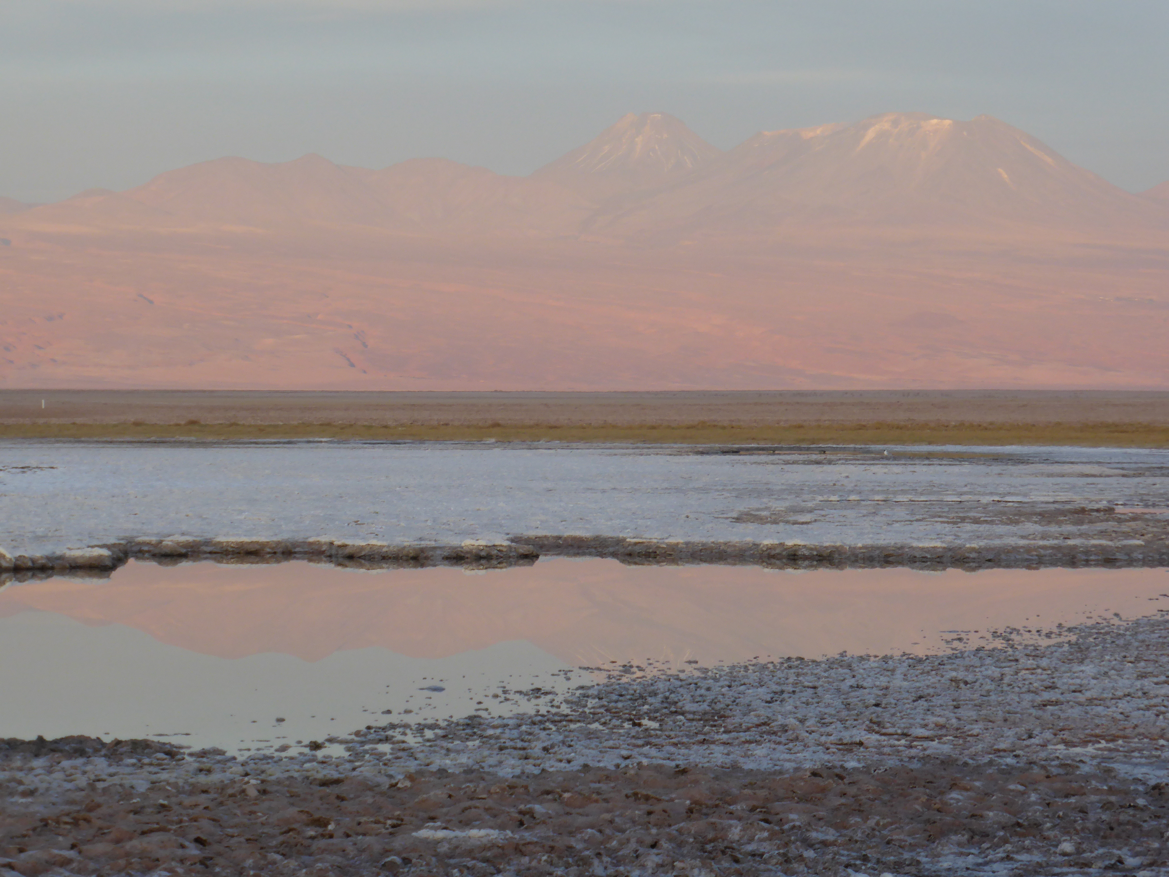 Again the colours of the mountains changed as the sun lowered – with deep purples, browns, pinks, sandy colours all being prominent and the colours were gradually changing as the sun lowered. To add to this totally magical display, the water of this laguna gave a wonderful reflection of the mountains. Again, it really was a breathtaking experience.